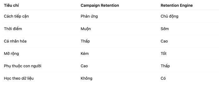 Một Retention Engine được thiết kế đúng giúp: