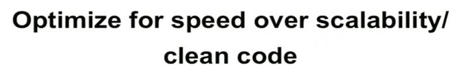 Là kỹ sư, bản năng của bạn là xây dựng một nền tảng với code đẹp và dễ mở rộng, đúng chứ? Bạn sẽ không muốn code một mớ lộn xộn chồng chất khó khăn về mặt kỹ thuật. Nhưng bạn cần phải tối ưu tốc độ hơn là khả năng mở rộng và code đẹp.